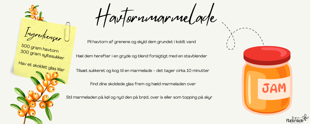 Skal du prøve kræfter med havtornmarmelade på bær fra egen have? Så kan du starte forberedelsen med at kigge på vores udvalg af buske her.