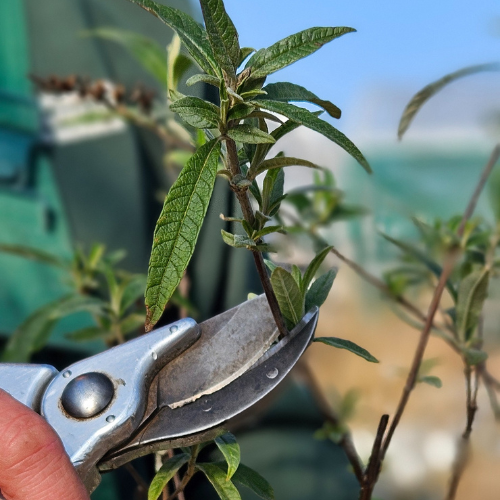 Kraftig beskæring af sommerfuglebusk efter en hård vinter