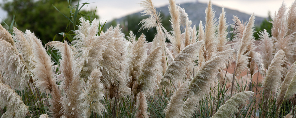 En helt magisk græsfontæne. Pampas græs er stor og flot at se på. De smukke fyldige blomsteraks som kommer fra august frem mod vinteren er det græssen kendes bedst på.