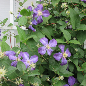Mulighederne er næsten uendelige. Klassiske klatreplanter som roser, klematis, kaprifolie og efeu er oplagte valg. Klematis kommer i utallige varianter med forskellige blomstringstider, så du kan skabe farvespil gennem hele sæsonen.