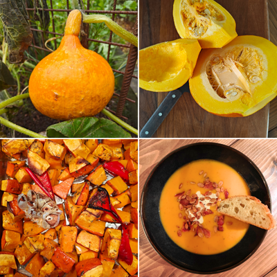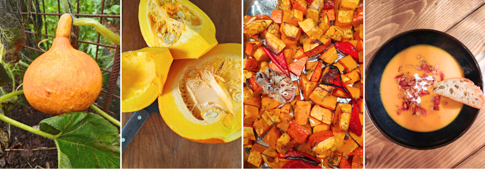 Græskarsuppe er en klassiker hos danskerne, og den bliver lavet med et væld af forskellige græskar. Hokkaido græskar, som er brugt her i opskriften, er et lille, japansk græskar i en smuk orange-rød farve, der ikke er nær så saftig som det klassiske græskar. Den er dog perfekt i madlavningen, da den er koncentreret og nøddeagtig i smagen med et blødt kød, der gør den nem at arbejde med. Ved at bage eller stege et hokkaido græskar, får man de gode nøddesmage ekstra meget frem, og derfor skal man i denne opskrift også bage græskarret mørt, inden det skal blendes. Udover at det fremhæver smagen, bliver grøntsagen også nemmere at arbejde med, når den er blevet bearbejdet lidt. Det er vores dygtige havedesigner, Tinna, der har givet os hendes lækre opskrift, og hun bager og blender hokkaidogræskaret med skal, da skalen er blød og nem at arbejde med. Husk blot at rense græskarret godt.
