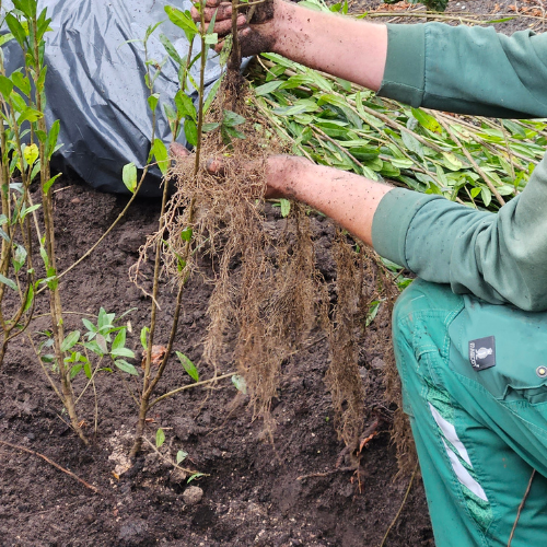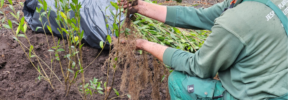Husk dog stadig at vande planterne godt efter udplantning selvom jorden typisk er fugtig på denne tid af året. Vand er altafgørende for planter efter nyplantning.