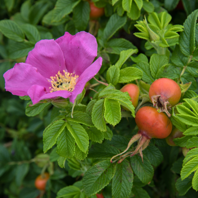 Hybenrose også fejlagtigt kaldt klitrose. Den rynkede rose er synonym med Vestkysten og findes mange steder på netop den strækning. Den blev indført som prydplante i 1800'erne, og i 1950'erne steg populariteten yderligere, da den blev populær som afgrænsning i sommerhusområder. Det er blandt andet derfor, man tit ser planten trives ved Vestkysten. Rynket rose kan trives i mange jordforhold og kan overleve meget, hvorfor den også er svær at få bugt med. Den vokser tæt og udkonkurrerer mange andre planter, blandt andet den hjemmehørende klitrose.