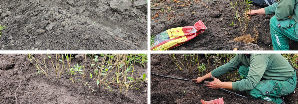Man kan bruge lidt kojord ved hver plante, når der plantes, så der kommer en god næring i planteområdet ved rødderne. Derudover kan man supplere med Plant Activator, som er nyttesvampe (mychorrhiza baseret pulver), der aktiverer rødderne yderligere. Dette iblandes under forberedelsen, så man kan gå lige til plantning.