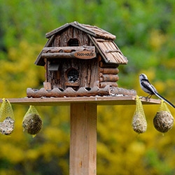 Har du valgt det rigtige fuglehus, er der næsten kun tilbage at vælge noget lækkert mad til de skønne små venner; alle vores fugle kan lide solsikkekerner. Får du mange forskellige fugle i din have er det en ide at servere en vildtfugle blanding kombineret med solsikkekerner. Små fugle er også specielt vilde med foderkuglerne.