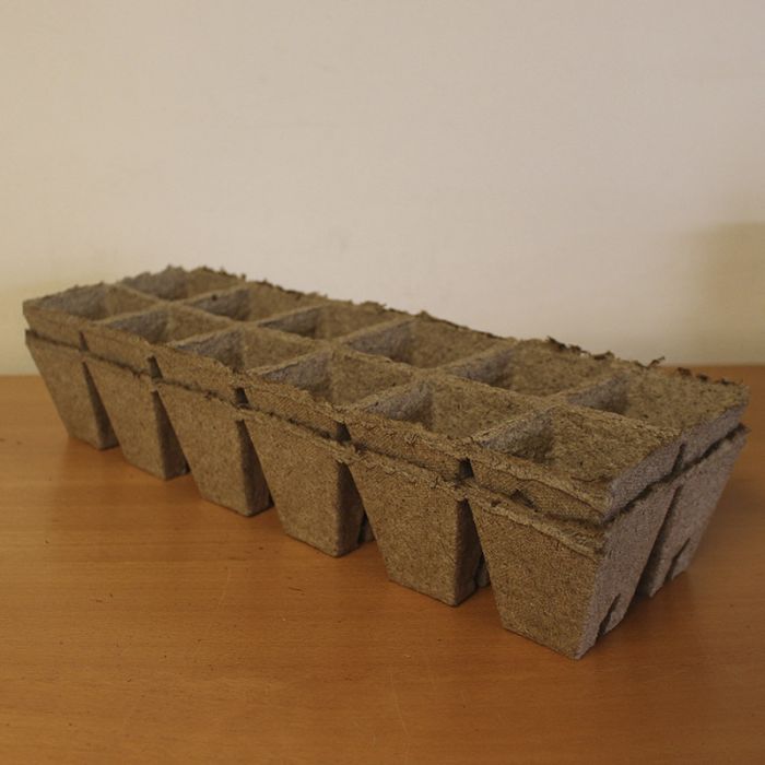 Potter lavet af nedbrydeligt naturmateriale. Er ideelt til forspirring. Potterne er meget praktisk da de opløser sig selv i jorden og derfor kan plantes direkte ud.