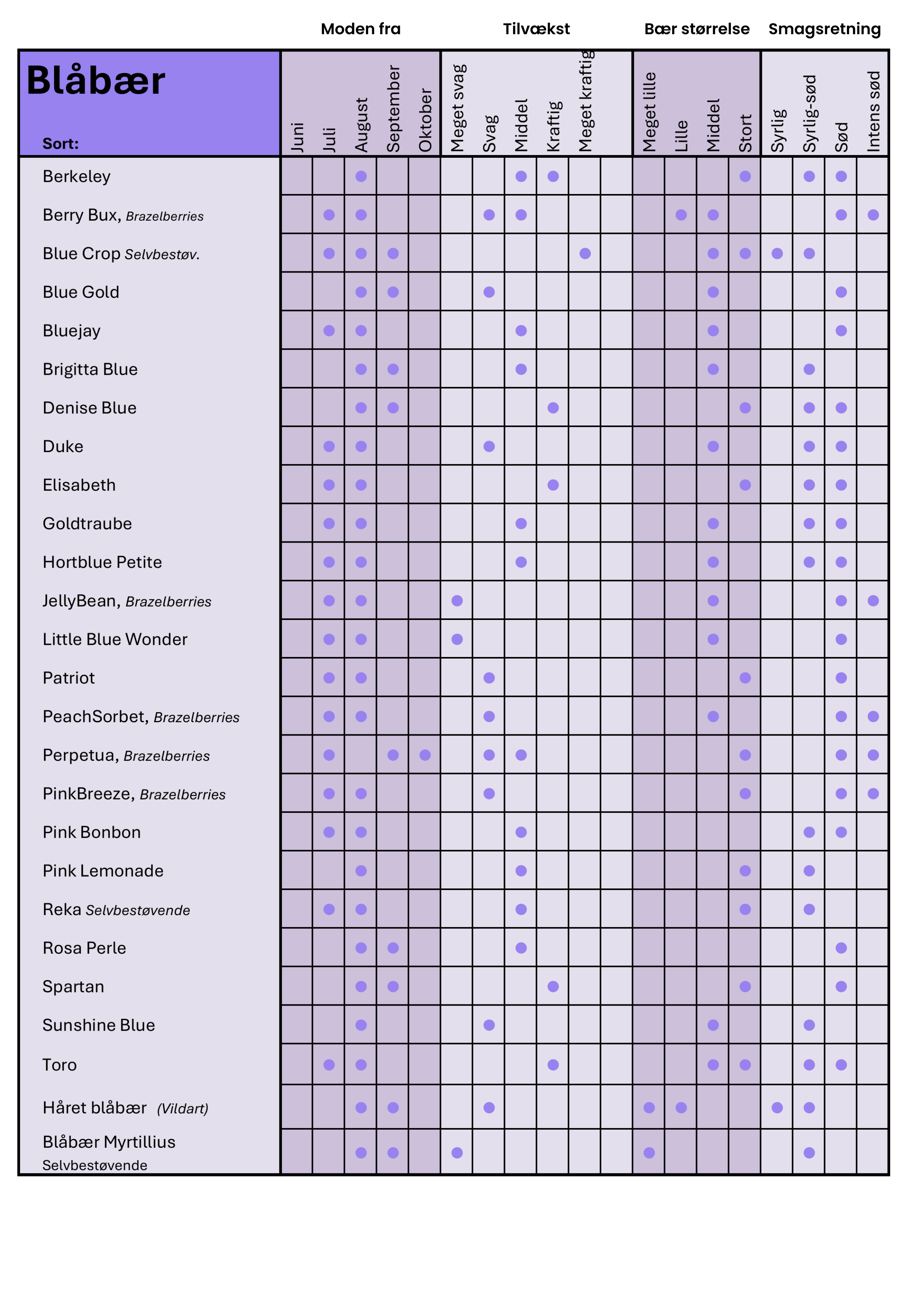 Modningsoversigt blåbær