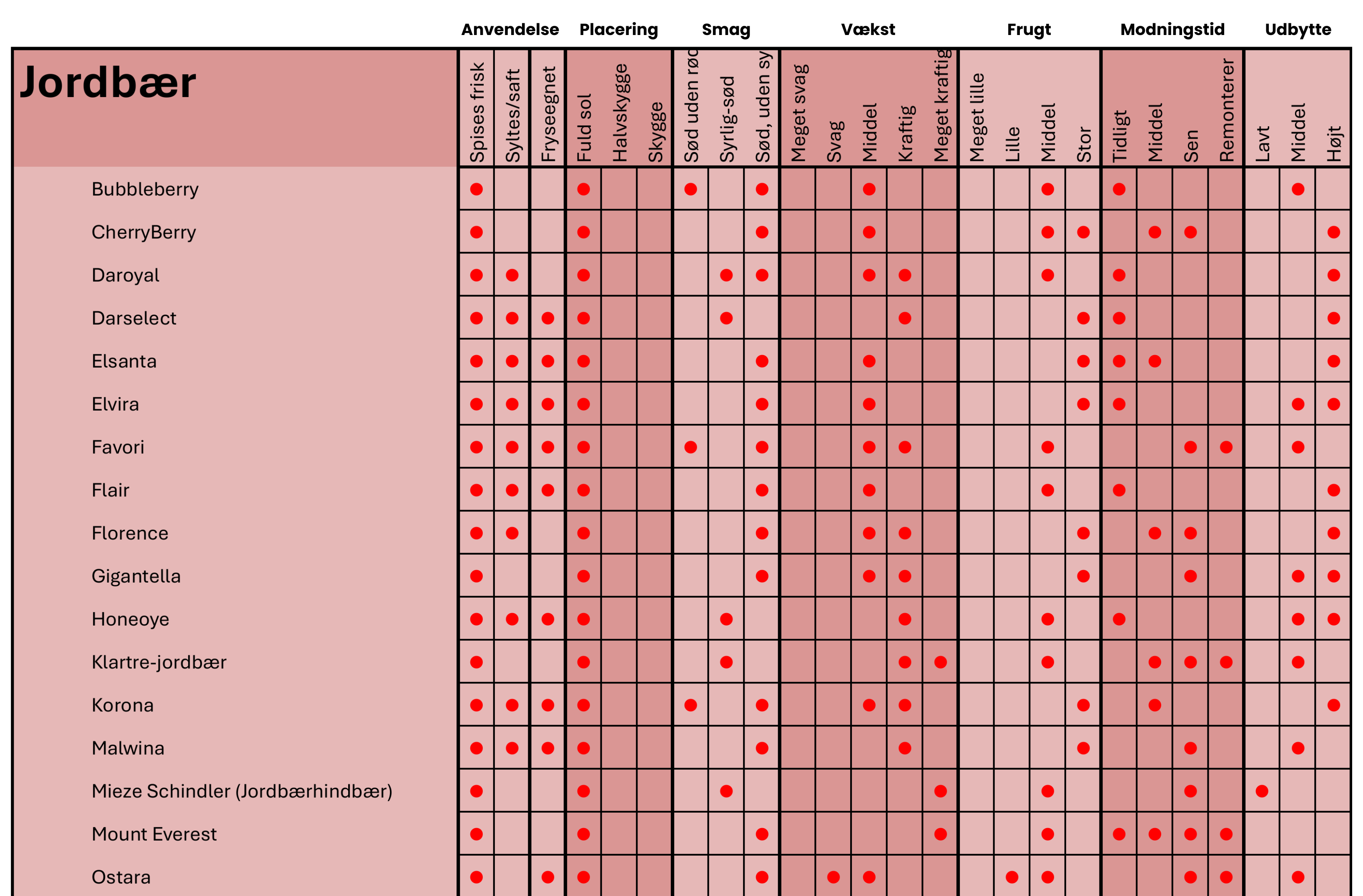 Modningsoversigt - Jordbær