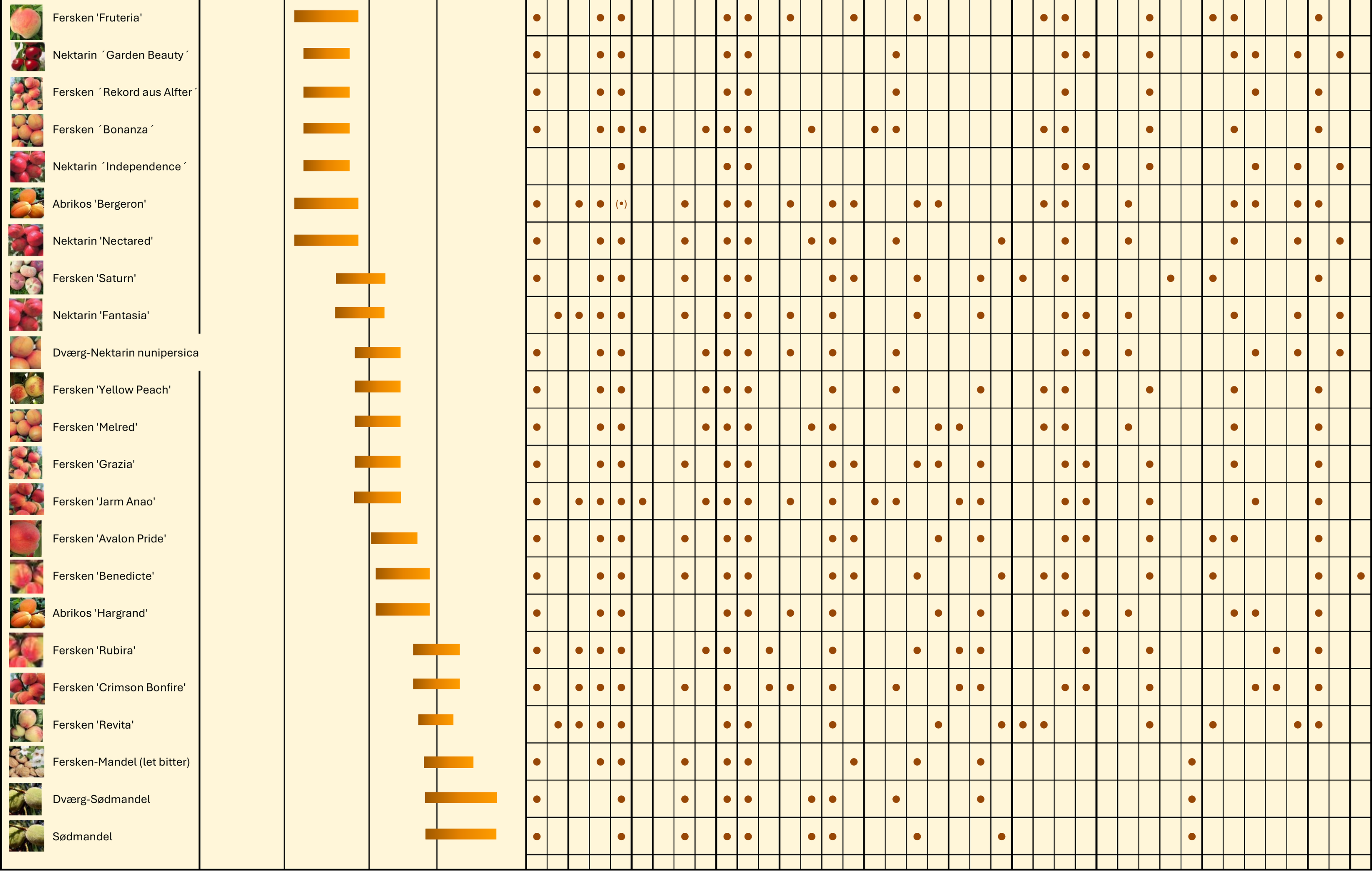 Modningsoversigt - Sydfrugter