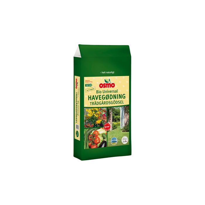 Osmo Bio universal havegødning er sammensat af udvalgte, nyttige og naturlige grundstoffer. Produktet er beriget med tangekstrakt og magnesium. Universalgødningen kan bruges som gødning til grøntsager, blomster, stauder, frugttræer, buske og græsplæner.